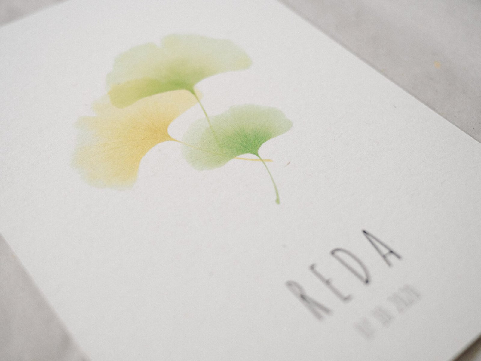 Birth announcement card for Jolijn and Martin’s little boy, Reda.