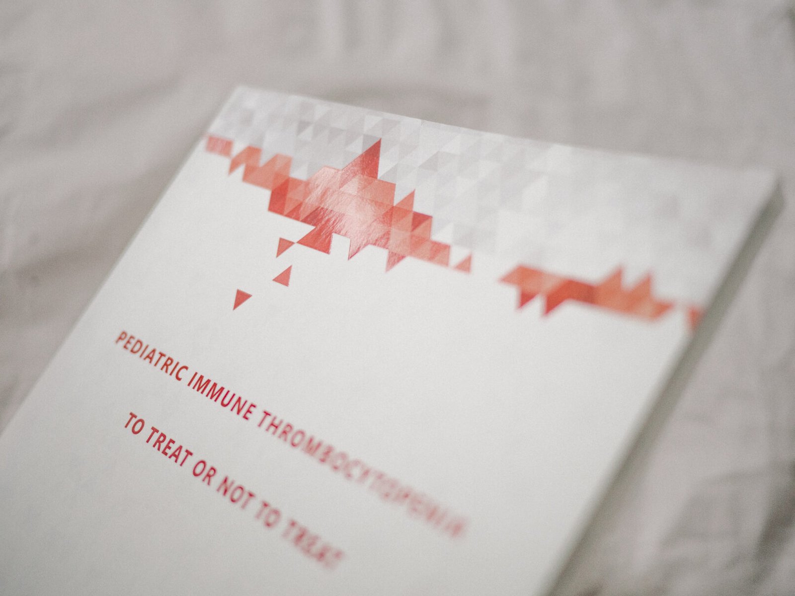 Cover design and layout for the PhD thesis of Katja Heitink, titled “Pediatric Immune Thrombocytopenia: To Treat Or Not To Treat”.
